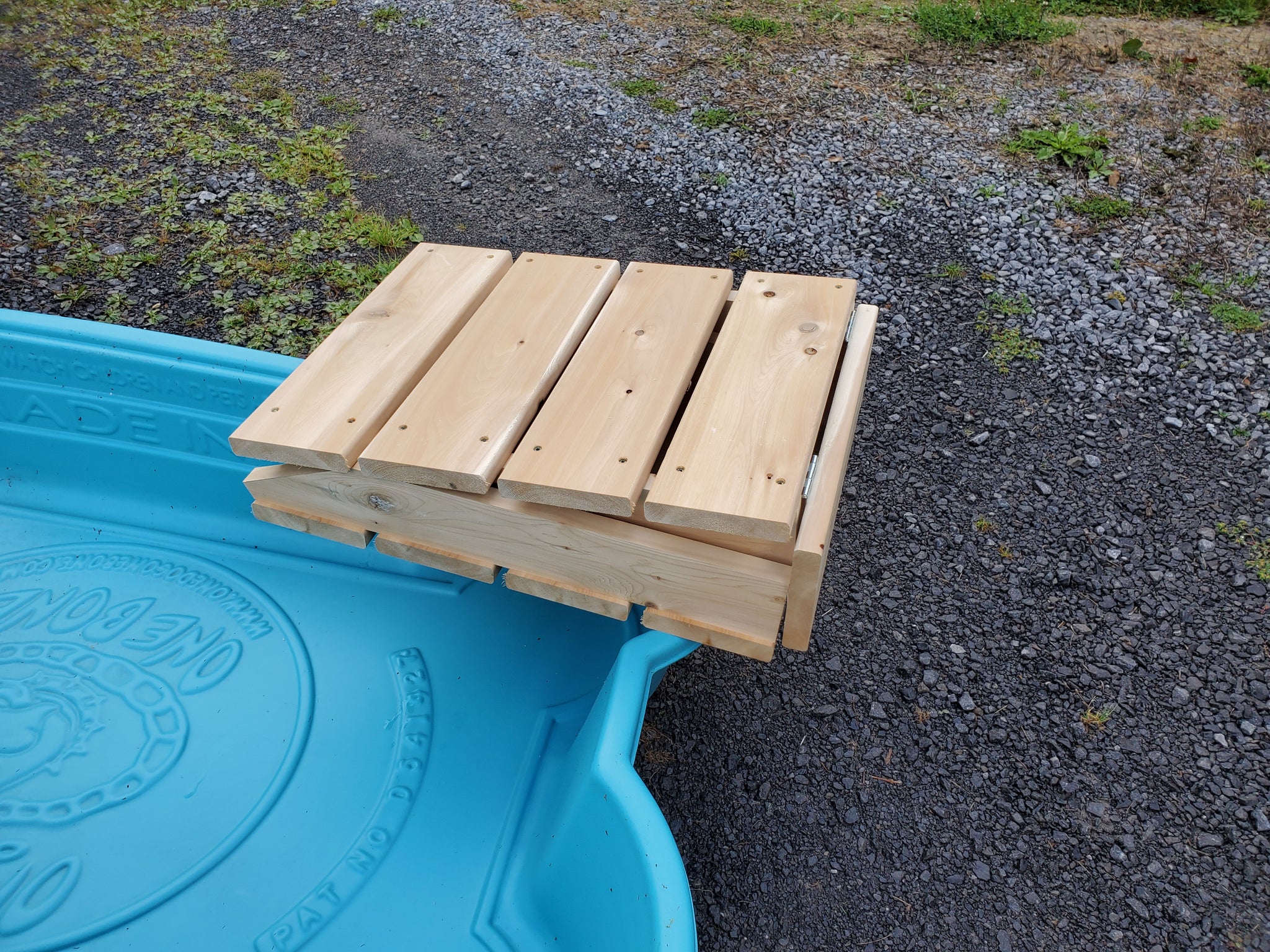 The Bone Pool Ramp is designed to help Small dogs in and out of the Bone Pool. Made with Cedar and stainless hardware for a long lasting quality product made in the USA. Folds up for easy storage.