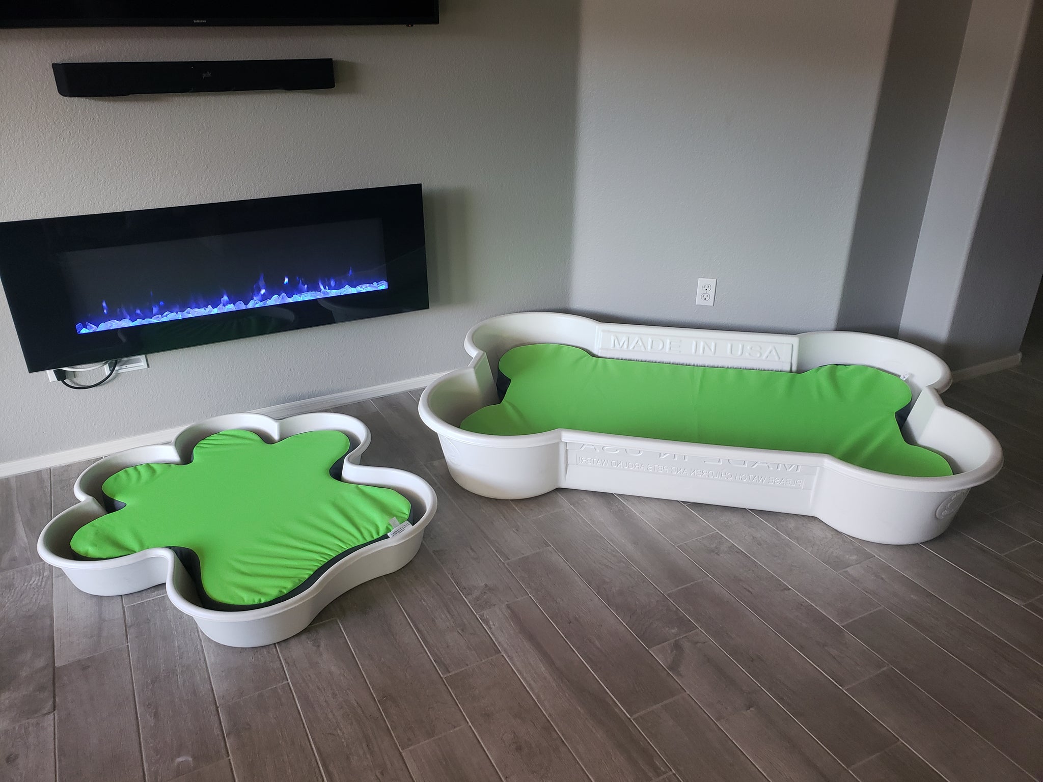 The Paw Bed is made to fit inside the Paw Pool when not being used as a pool. The Paw Bed Utilizes the Paw Pool as a mattress frame. May be used without Paw Pool as well. Cover is made with high quality UV/Stain Resistant material. The 4" Core is high quality, "safe for your dog" foam. The Cover is a Three color reversible cover with Spring Sky (Baby Blue) on one side, Autumn Leaf (Brown) on the other, with Rock Shadow (Charcoal Grey) separating the two. Also Available in Summer Park (Lime Green), Winter Day(Light Grey) with Rock Shadow (Charcoal Grey) Center.